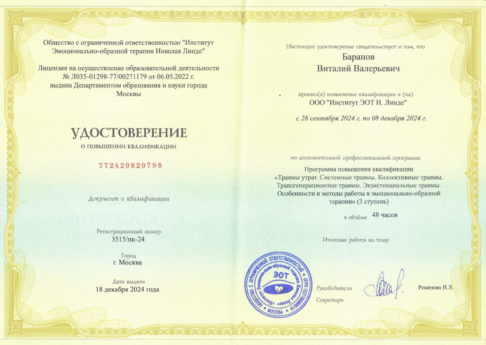 Я дипломированный психолог с многолетним стажем практической работы. Можете быть уверены в том, что получаете действительно качественную психологическую помощь.